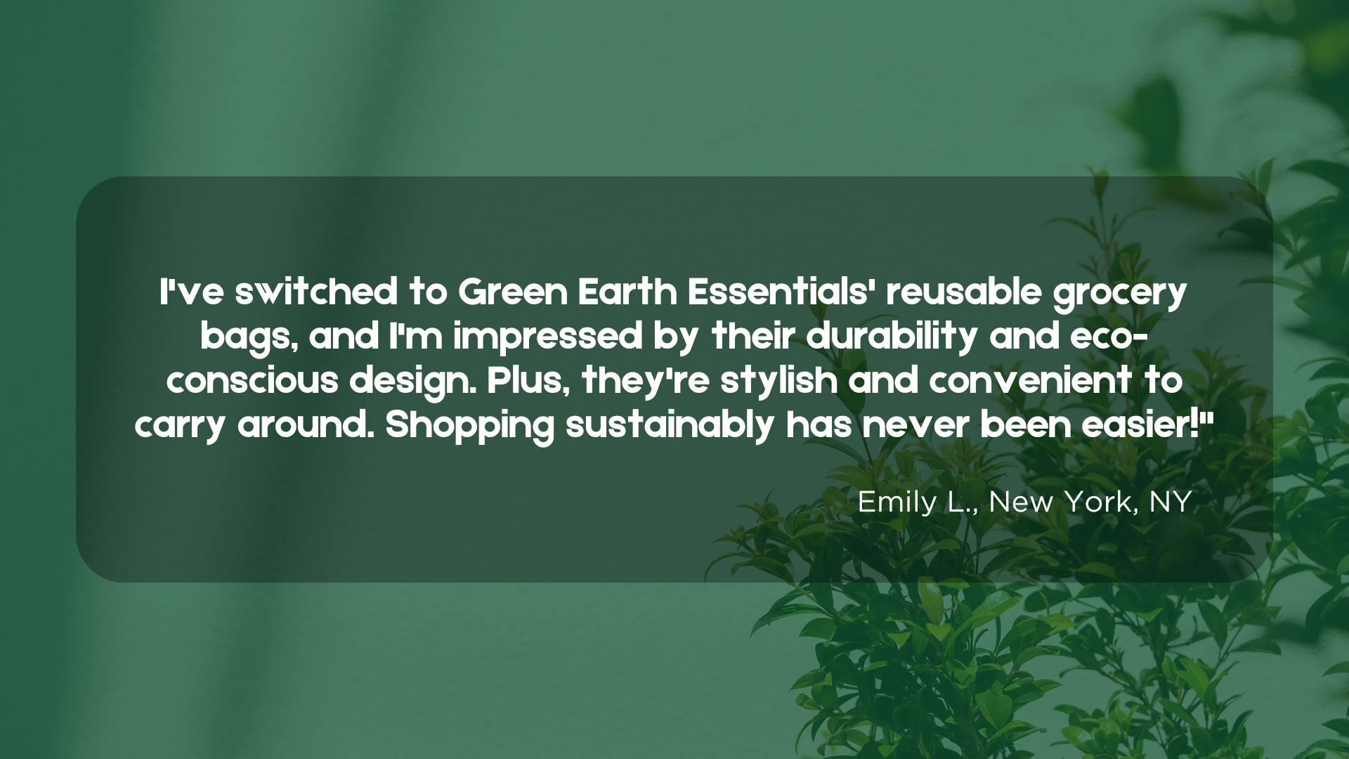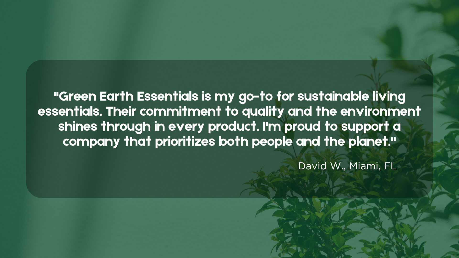 Quality, Sustainability, Satisfaction. Green Earth Essentials guarantees eco-friendly products that exceed expectations. If you're not satisfied, we'll make it right.